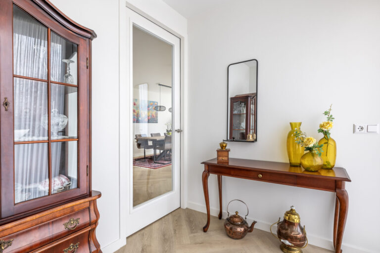 Het appartement is bereikbaar via de individuele entree. De entree biedt voldoende ruimte voor een garderobe en schoenenkast.