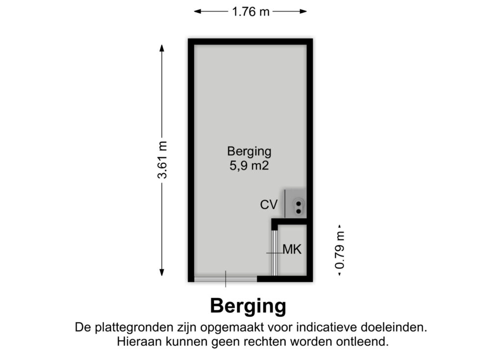 Er is een externe bergruimte van circa 5,9 vierkante meter aanwezig. Hierin bevinden zich ook de meterkast en de cv-ketel (2021). Daarnaast is er ruimte voor de stalling van een fiets of een stukje opslag. De ruimte voor de individuele berging is gezamenlijk in gebruik met de naastgelegen buren.