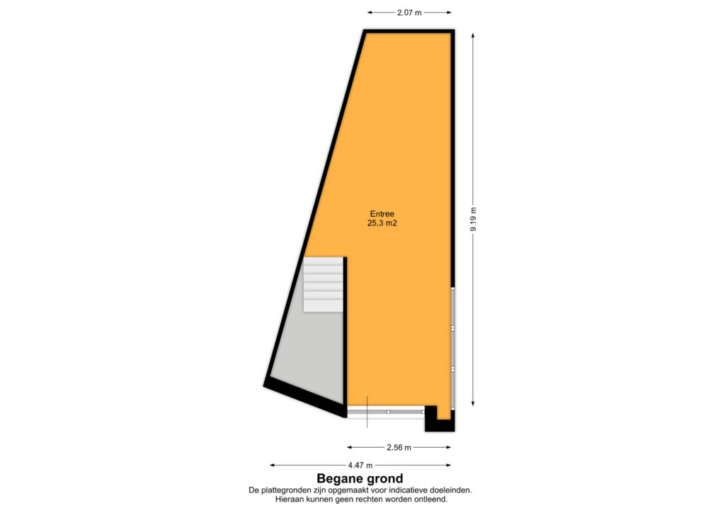 Op de begane grond bevindt zich de entree. De eerste en tweede verdieping zijn bereikbaar via de eigen trapopgang.