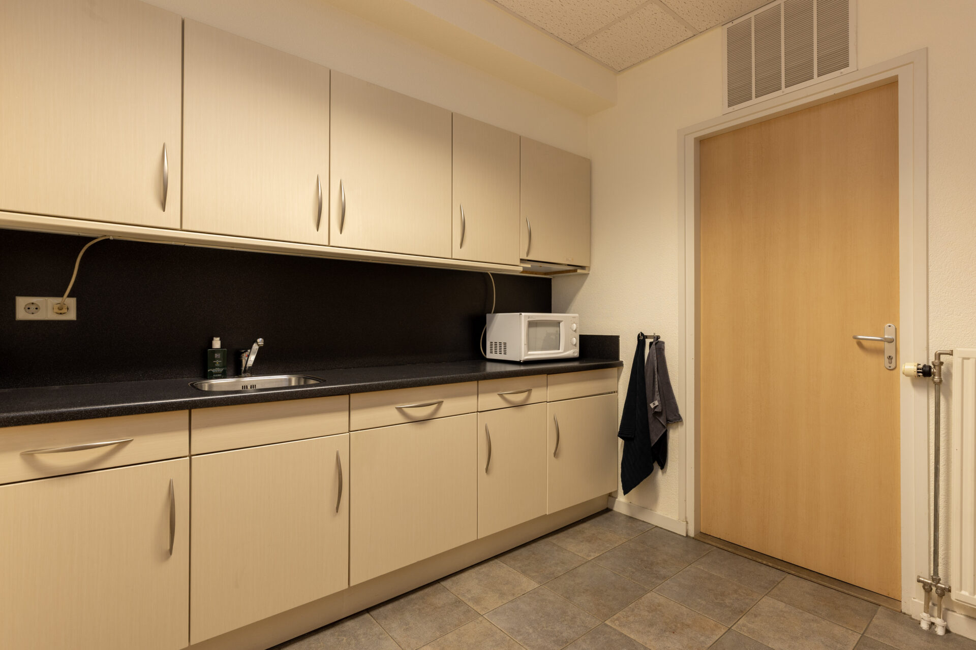 Op de tweede verdieping zijn tevens de toiletten en de pantry met een spoelbak, een vaatwasser en een koelkast gesitueerd. Deze zijn bereikbaar via de overloop en de grootste kantoorruimte.