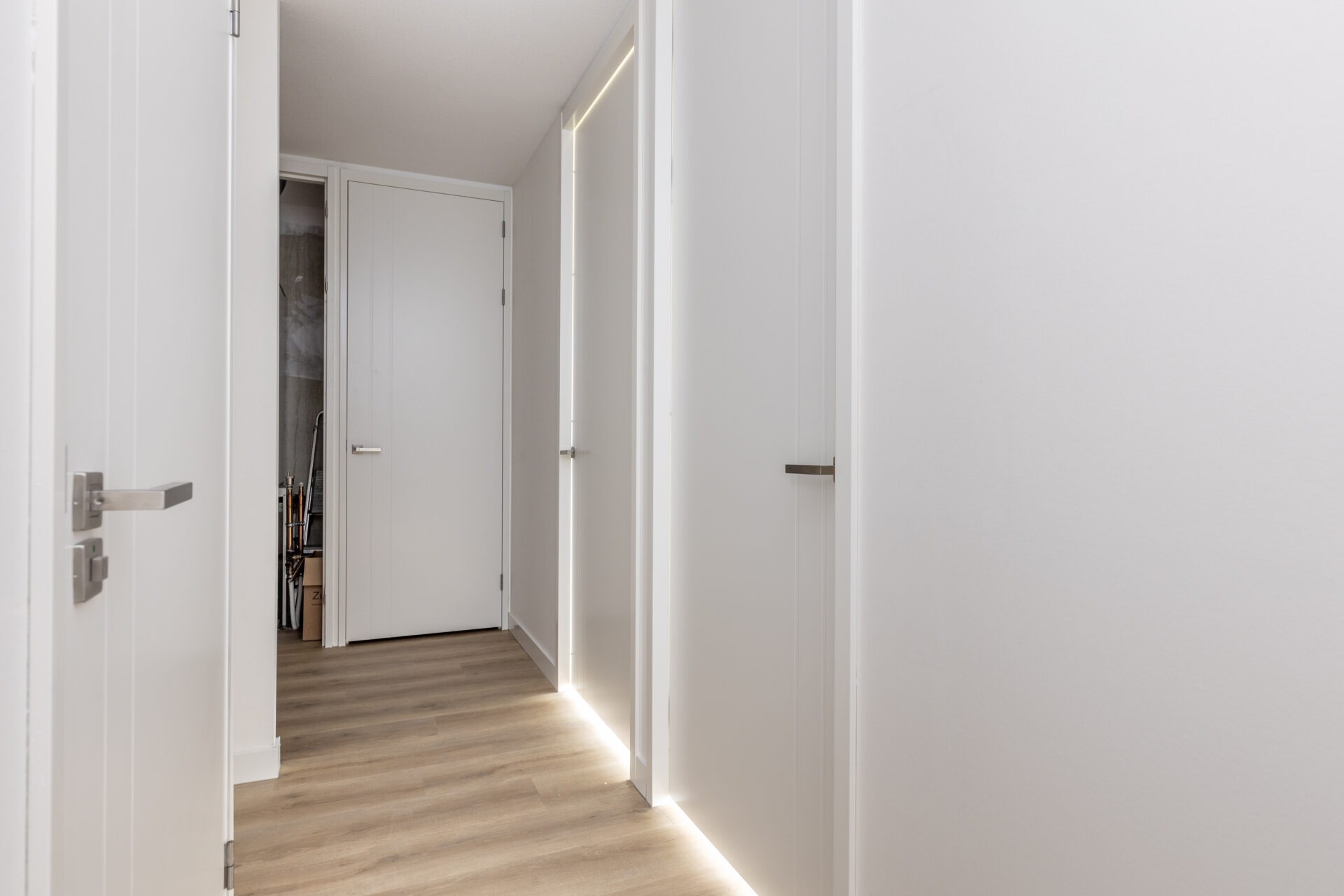 De woonkamer, de slaapkamers en de entree zijn voorzien van een lichte pvc-vloer. De badkamer en het separate toilet beschikken over een tegelvloer. Het gehele appartement is voorzien van vloerverwarming.