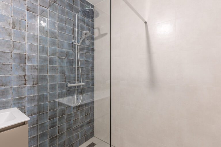 Tegenover de slaapkamers bevindt zich de moderne badkamer, welke is uitgerust met een inloopdouche, een dubbele wastafel en een handdoekradiator.