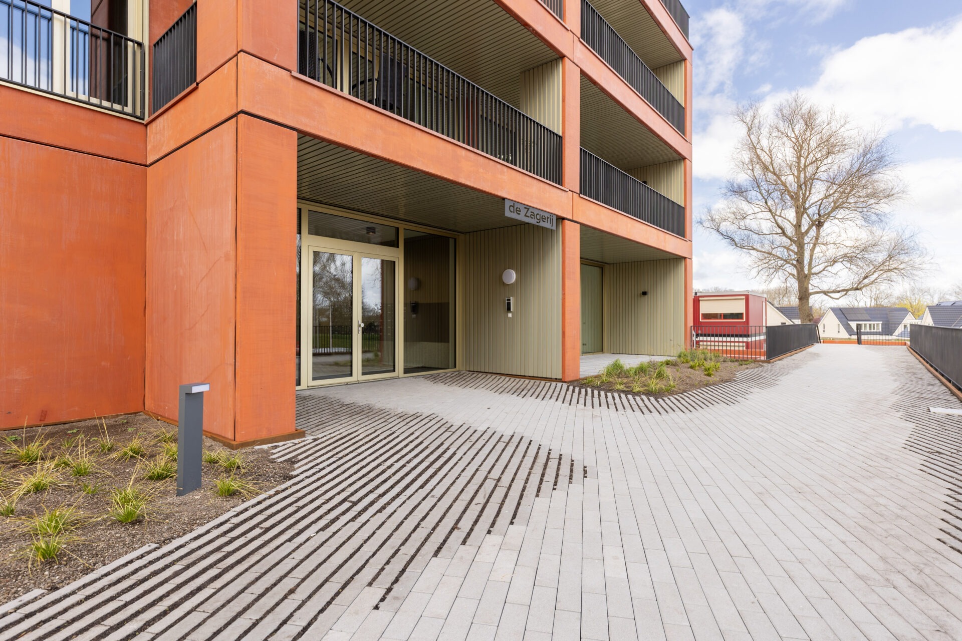 Via de openbare tuin, voorzien van een aantrekkelijk groen karakter, bankjes en een sierlijke doorloop, bereikt men het gebouw ‘de Zagerij’, waar het appartement gelegen is. In de gemeenschappelijke entree bevinden zich de brievenbussen en een intercom. De trap en de lift bieden een gemakkelijke toegang tot de verschillende woonlagen van het gebouw.