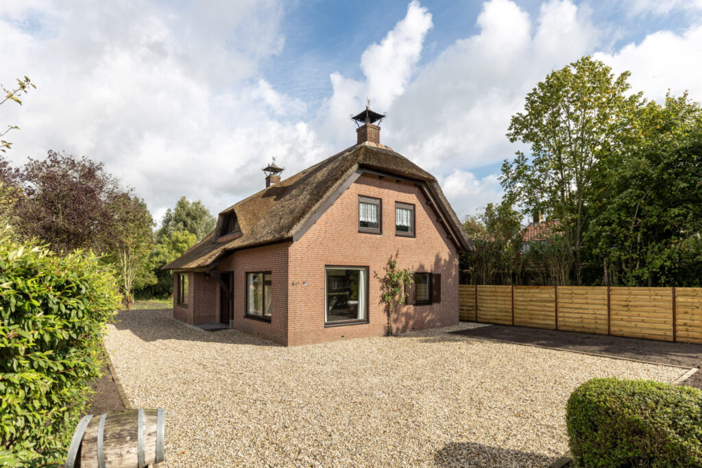De woning heeft een warme en charmante uitstraling, onder andere door de rieten kap. Met een woonoppervlakte van circa 144 vierkante meter biedt deze woning meer dan voldoende ruimte om hier jouw ideale thuis van te maken! De begane grond beschikt over een sfeervolle woonkamer met een karakteristieke schouw en grote raampartijen die voor veel natuurlijk licht zorgen. Vanuit de woonkamer is de riante woonkeuken met aangrenzende bijkeuken bereikbaar. Tevens is de badkamer en één van de vier slaapkamers op de begane grond gelegen. Op de verdieping vindt men de overige drie ruime slaapkamers.