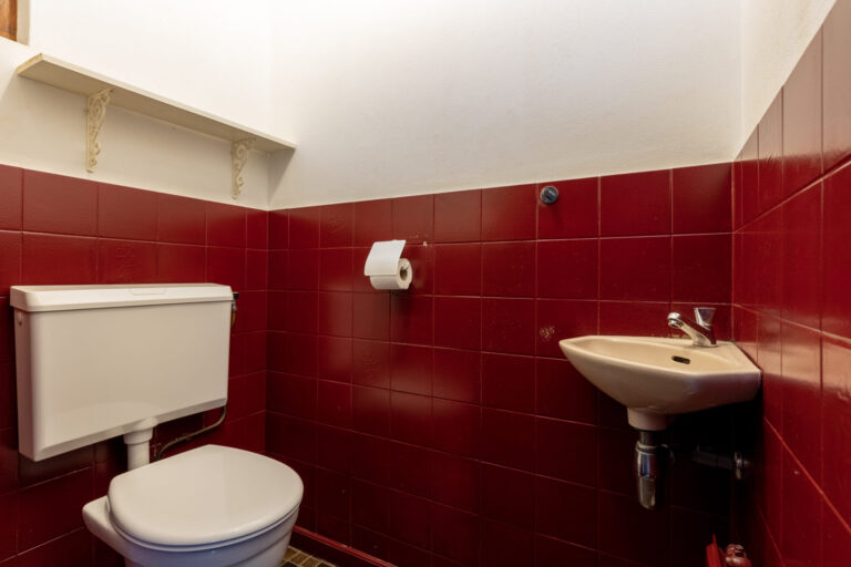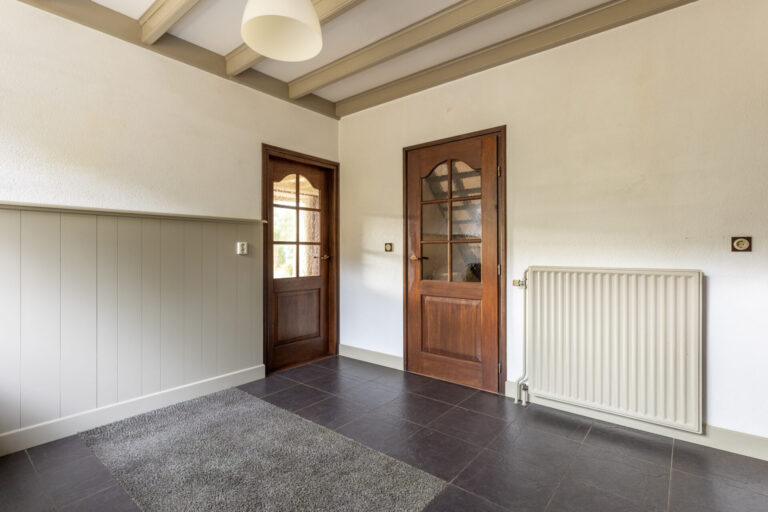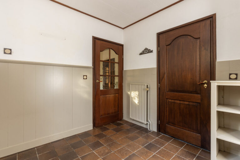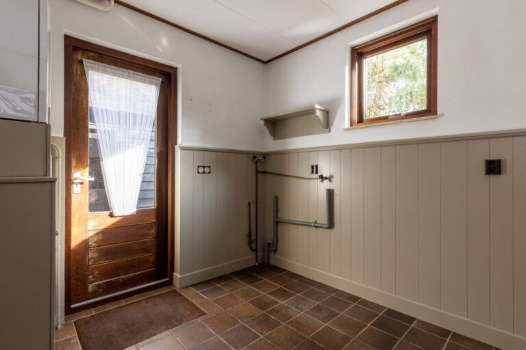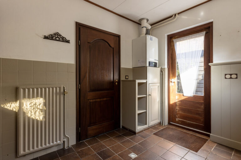 Vanuit de keuken kan men de praktische bijkeuken bereiken, welke beschikt over een achterdeur naar buiten. Hier bevinden zich de centrale verwarming en de wasmachineaansluiting.