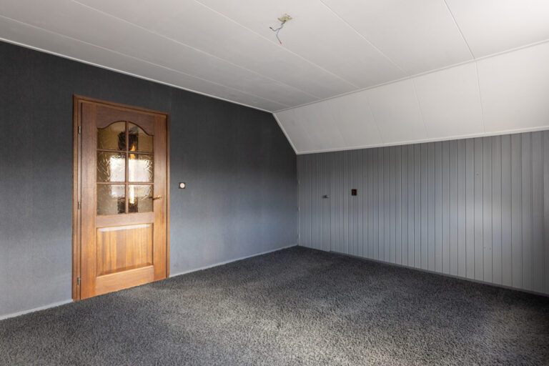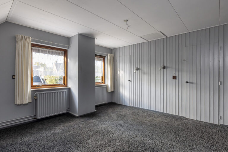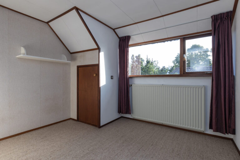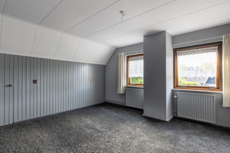 Hiernaast is een tweede slaapkamer gelegen, met een oppervlakte van circa 10,7 vierkante meter. Door de dakkapel is meer ruimte en lichtinval in deze slaapkamer ontstaan.