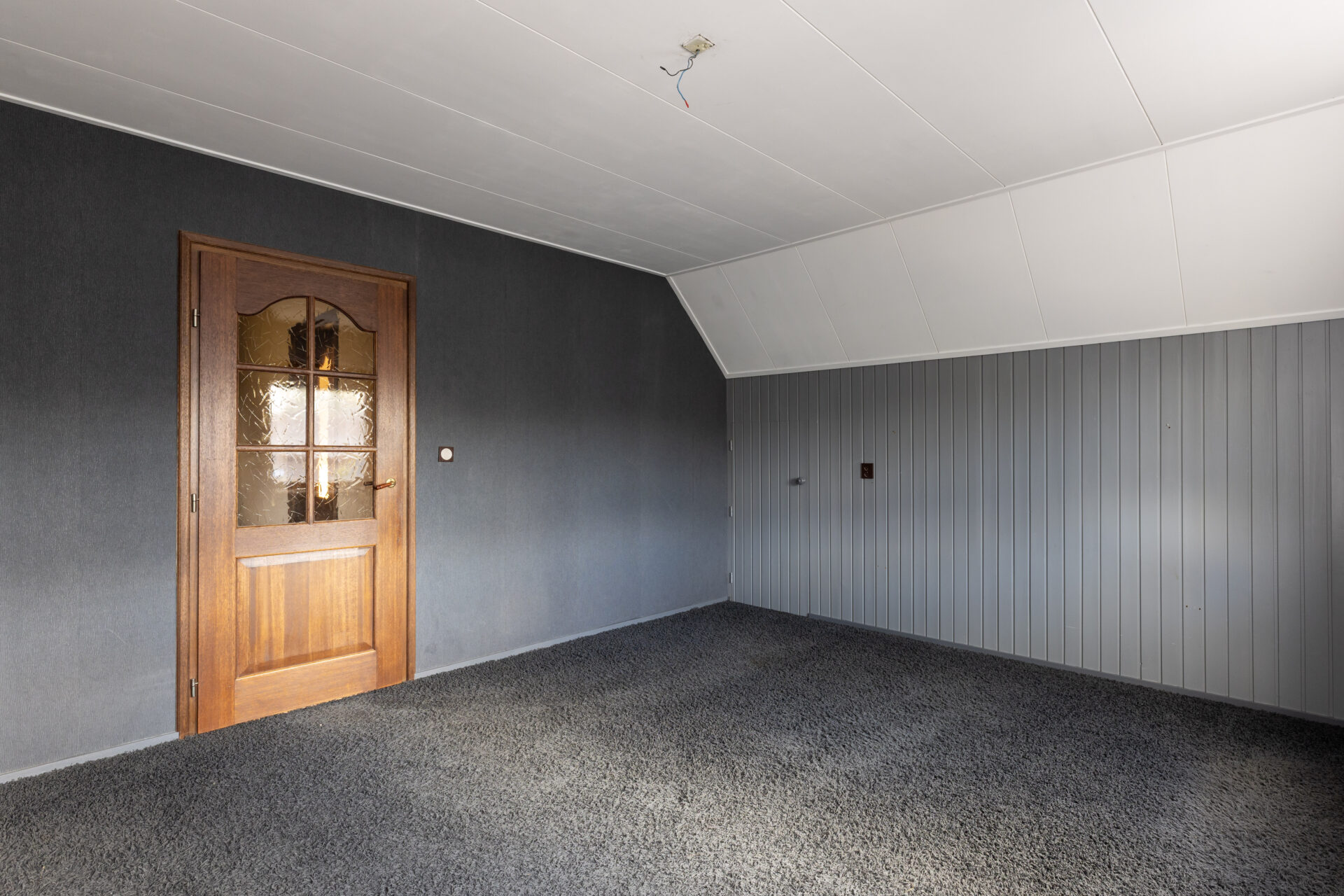 Op de begane grond is tevens een slaapkamer aanwezig. Deze beschikt over een oppervlakte van circa 12,5 vierkante meter. In de slaapkamer is een ingebouwde kast aanwezig.