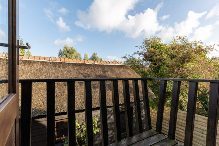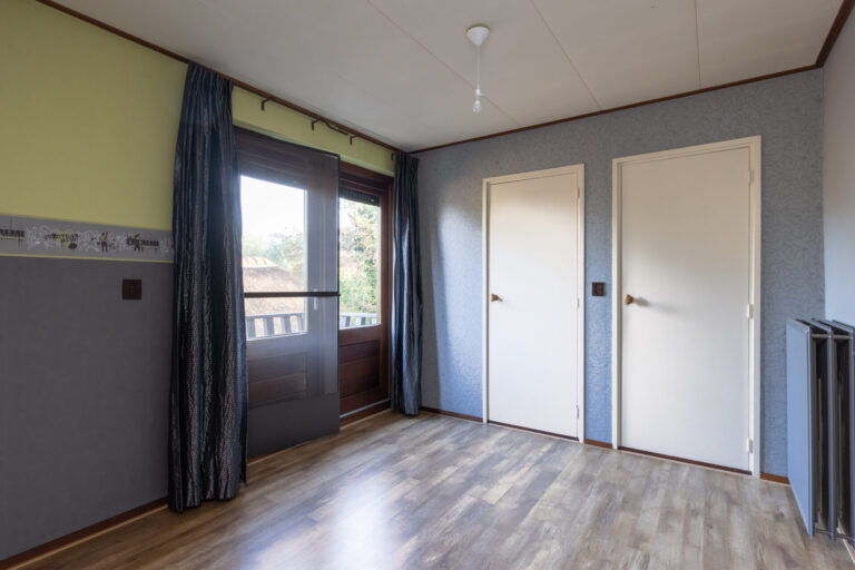 Aan de achterzijde van de woning bevindt zich de derde slaapkamer van de verdieping, met een oppervlakte van circa 11,7 vierkante meter. Deze heeft toegang tot het balkon, met uitzicht op de landelijke omgeving!
