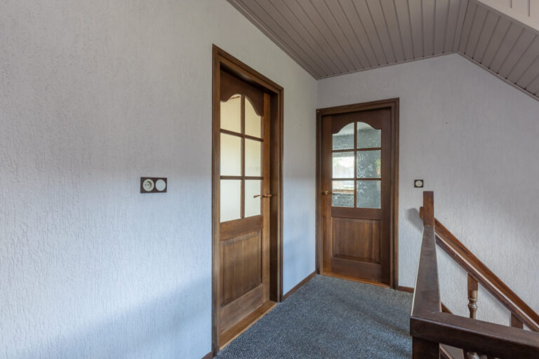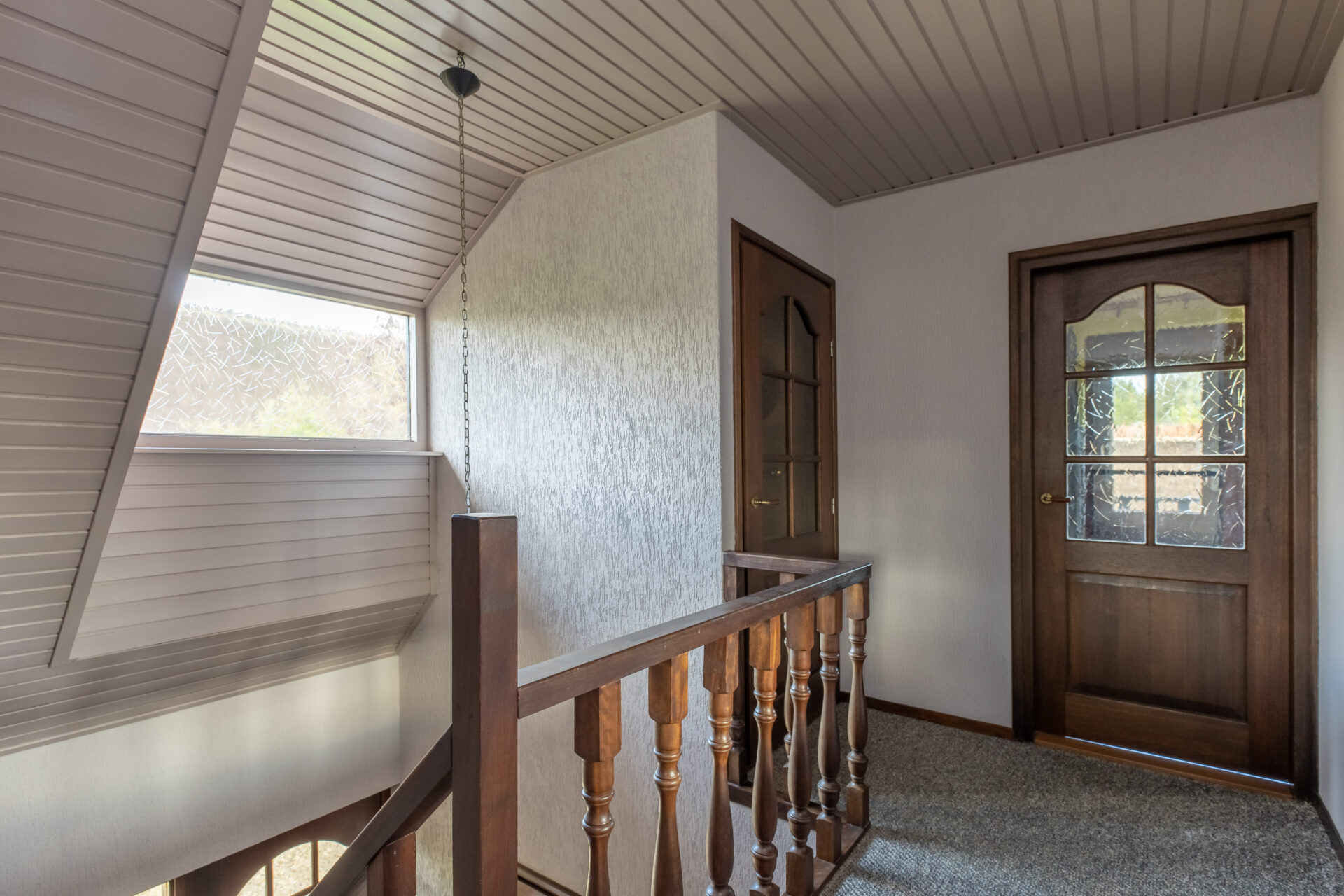 In de slaapkamers is opbergruimte gecreëerd door de ingebouwde kasten onder het schuine dak.
