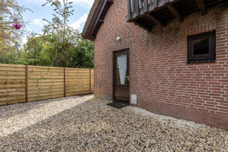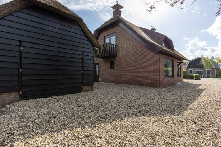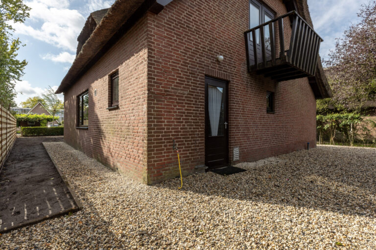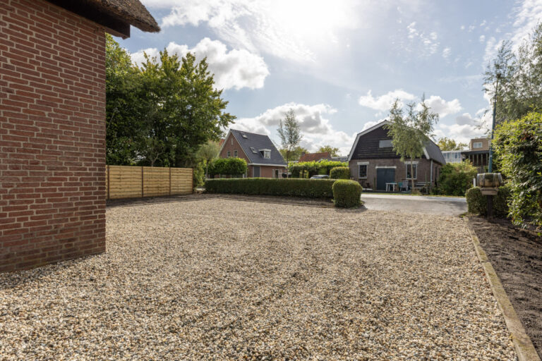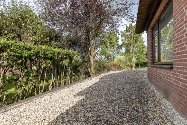 Aan beide zijden van de woning bevindt zich een grindpad naar de achterkant. De achtertuin is gelegen op het noorden. Deze biedt voldoende ruimte en mogelijkheden om een fijne tuin met verschillende zitgelegenheden te creëren. Zo kan je optimaal genieten van de vrije, landelijke omgeving!