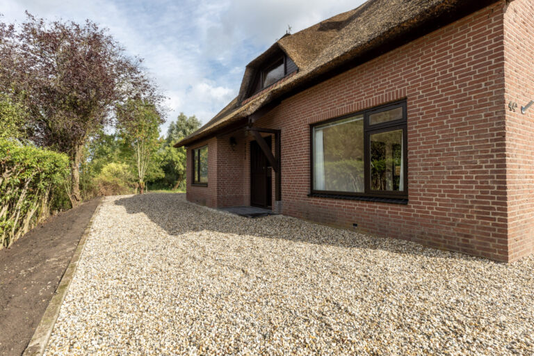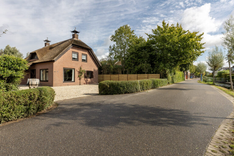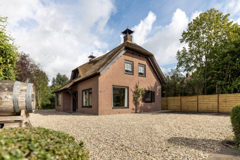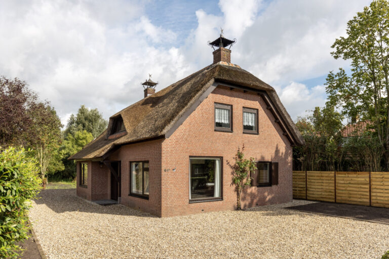 De woning heeft een warme en charmante uitstraling, onder andere door de rieten kap. Met een woonoppervlakte van circa 144 vierkante meter biedt deze woning meer dan voldoende ruimte om hier jouw ideale thuis van te maken! De begane grond beschikt over een sfeervolle woonkamer met een karakteristieke schouw en grote raampartijen die voor veel natuurlijk licht zorgen. Vanuit de woonkamer is de riante woonkeuken met aangrenzende bijkeuken bereikbaar. Tevens is de badkamer en één van de vier slaapkamers op de begane grond gelegen. Op de verdieping vindt men de overige drie ruime slaapkamers.