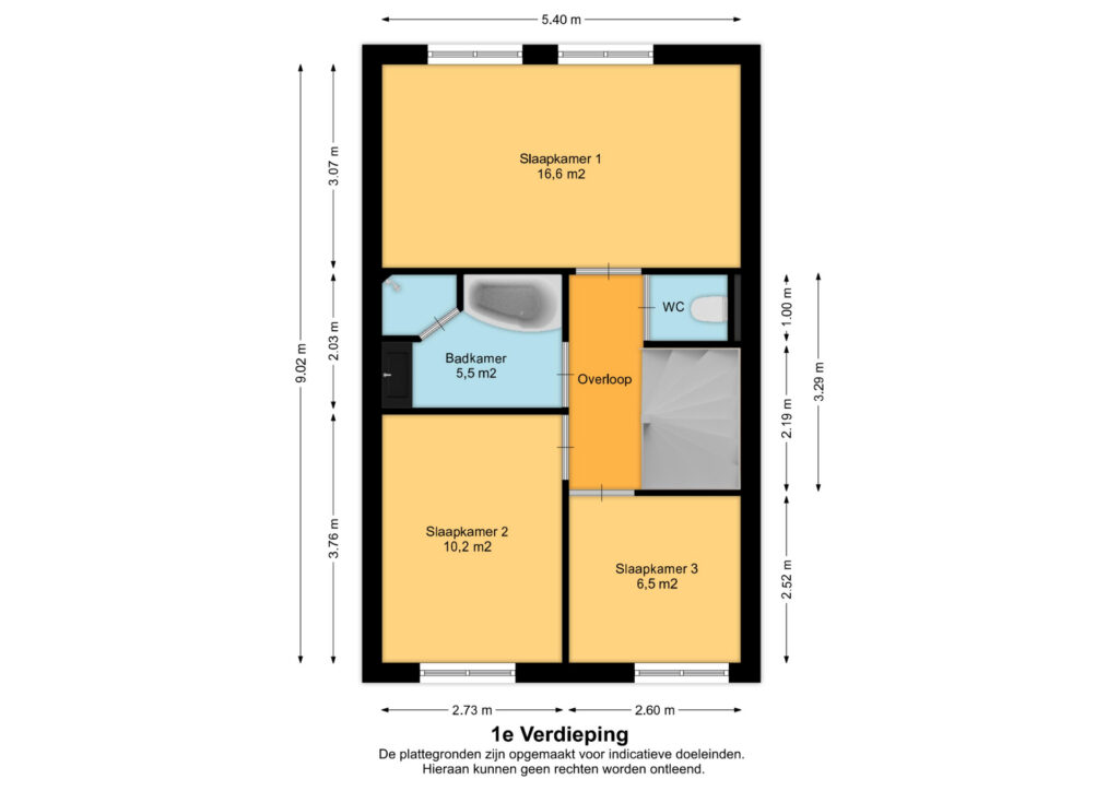 • Drie slaapkamers op de eerste verdieping aanwezig (circa 16,6; 10,2 en 6,5 vierkante meter);