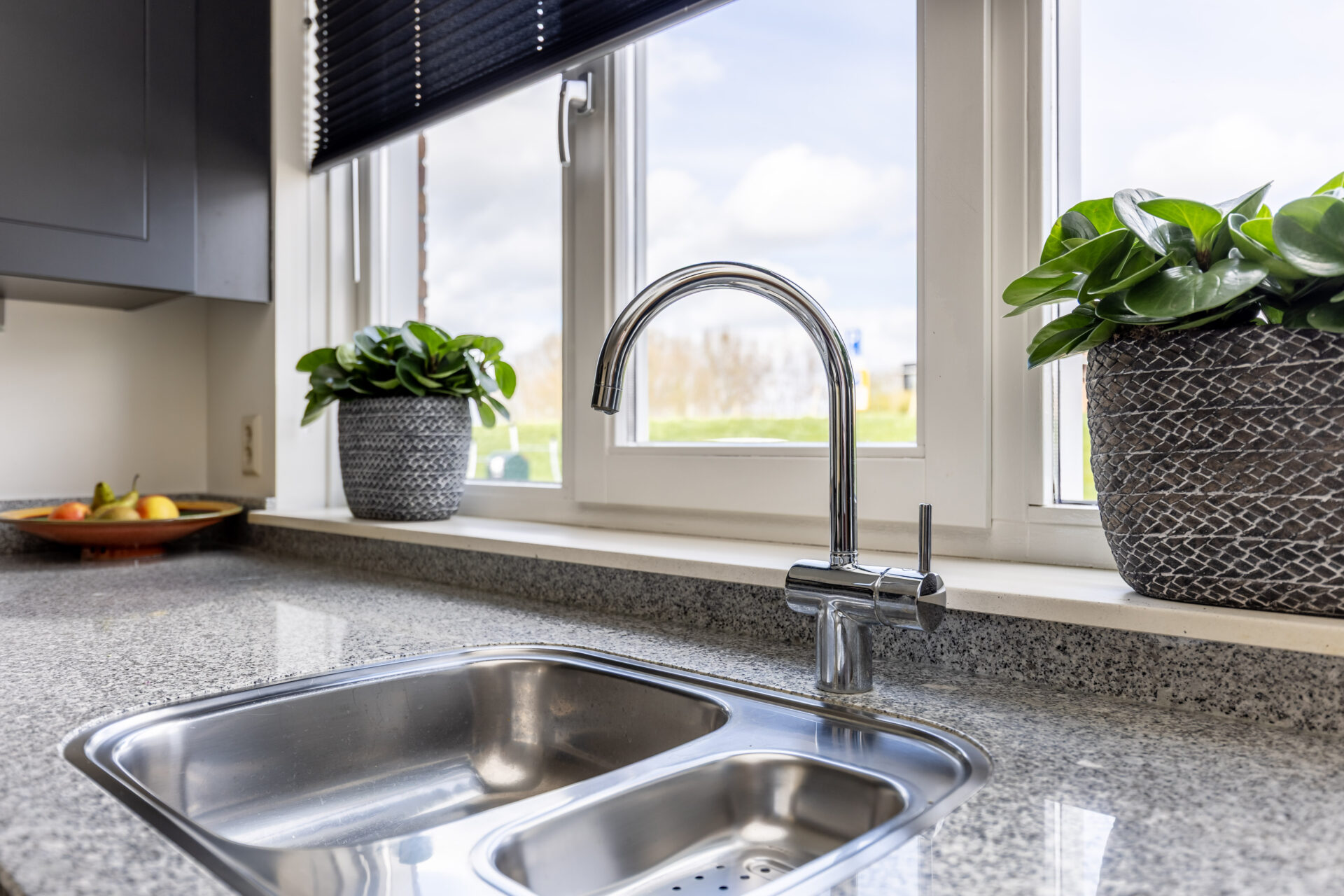 De entree biedt toegang tot de lichte woonkamer en aangrenzende keuken. De moderne keuken in L-opstelling bevindt zich aan de voorzijde van de woning en is uitgerust met een koelkast, een combimagnetron, een oven, een gasfornuis met afzuigkap, een spoelbak en een vaatwasser (2020). Vanuit de keuken kijkt u uit op een groene en open omgeving!