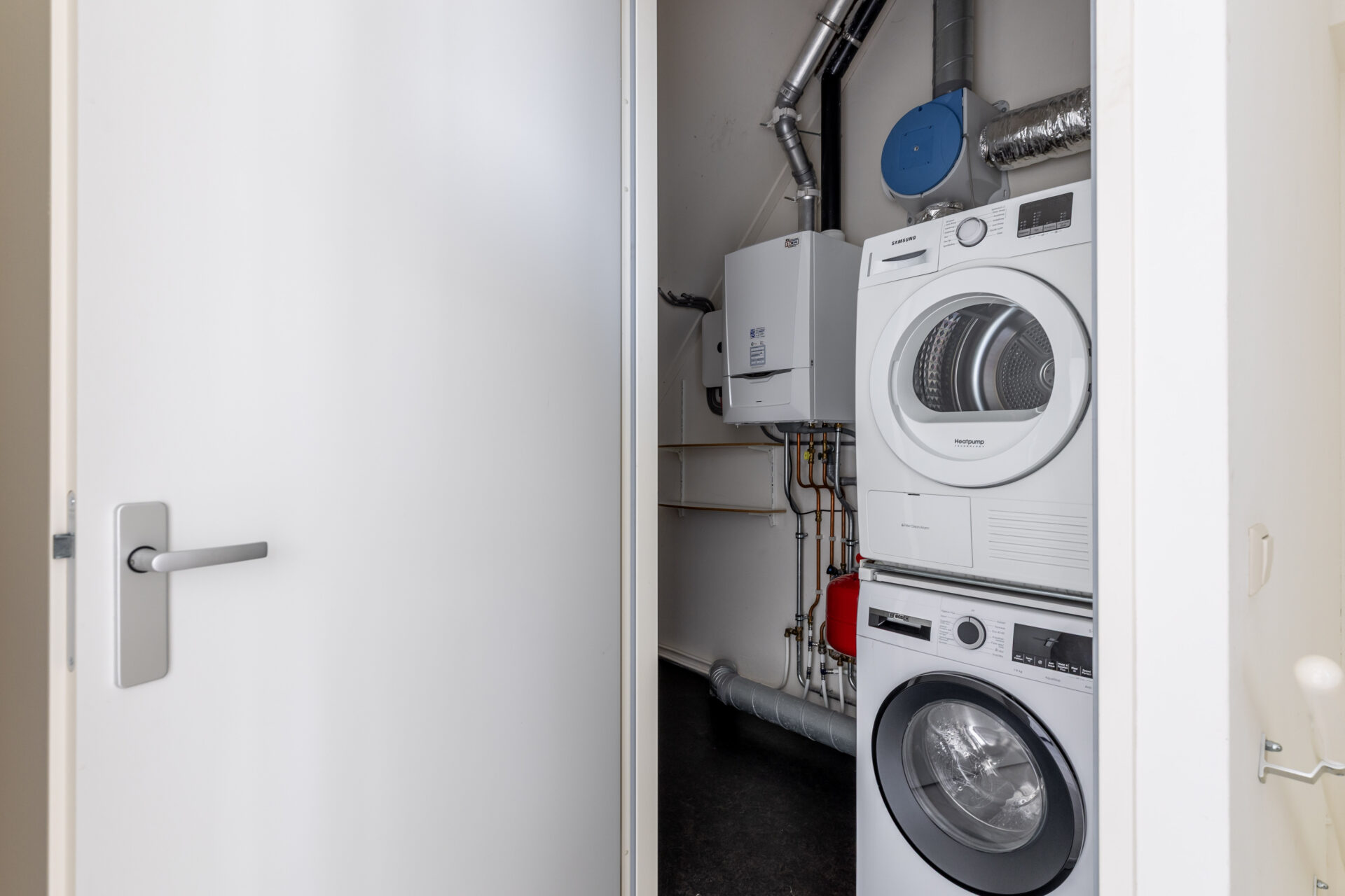 Tevens is er een wasruimte aanwezig, waarin zich de wasmachineaansluiting en de cv-installatie bevinden.