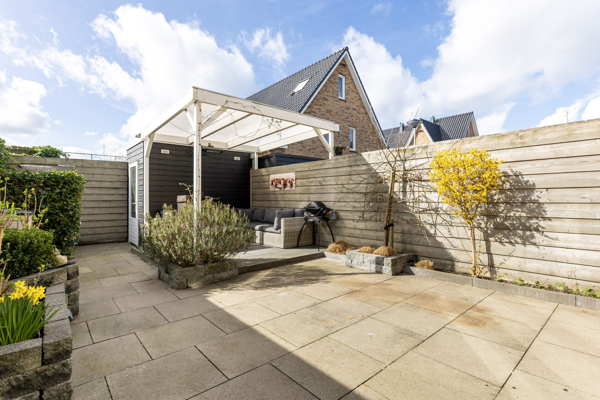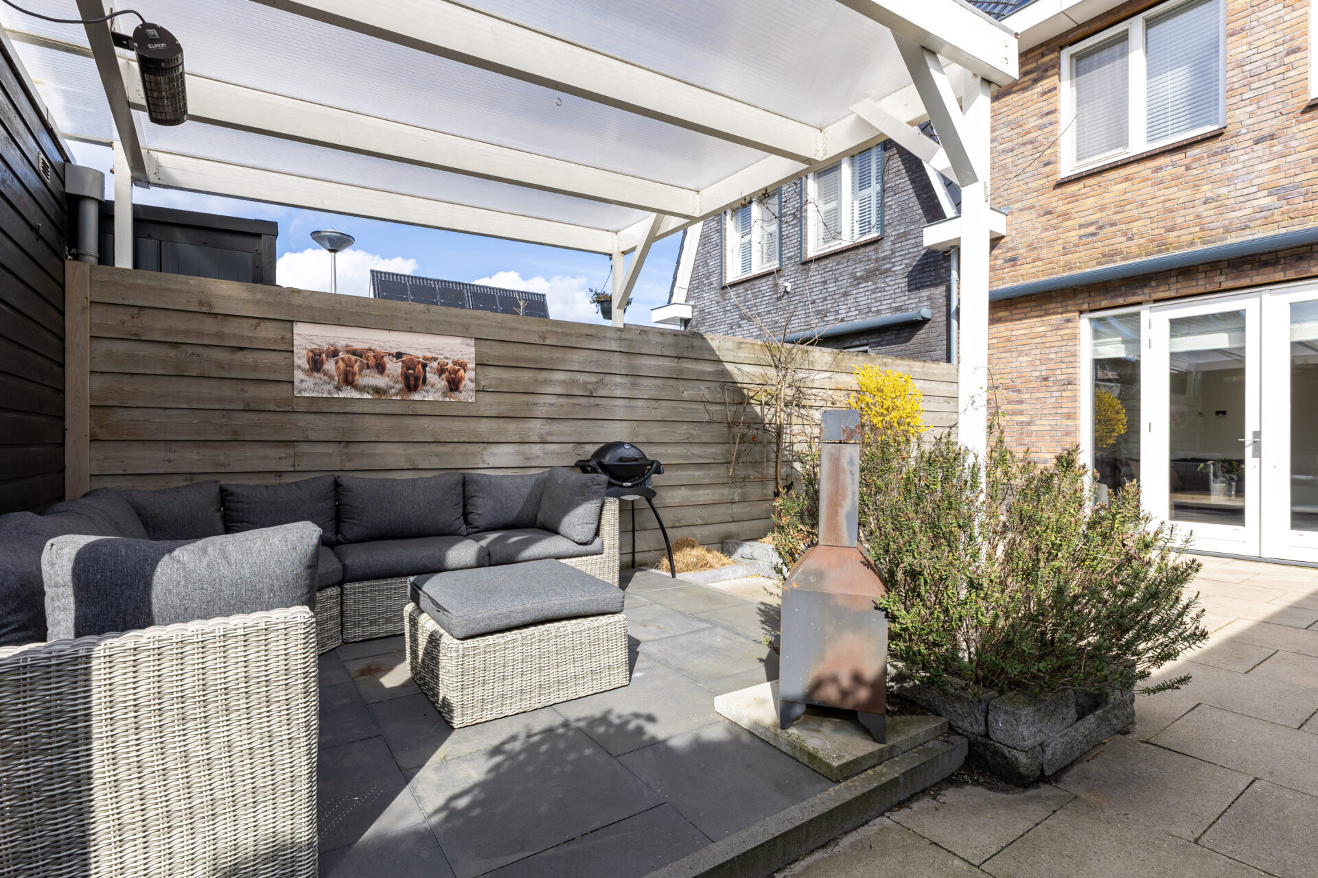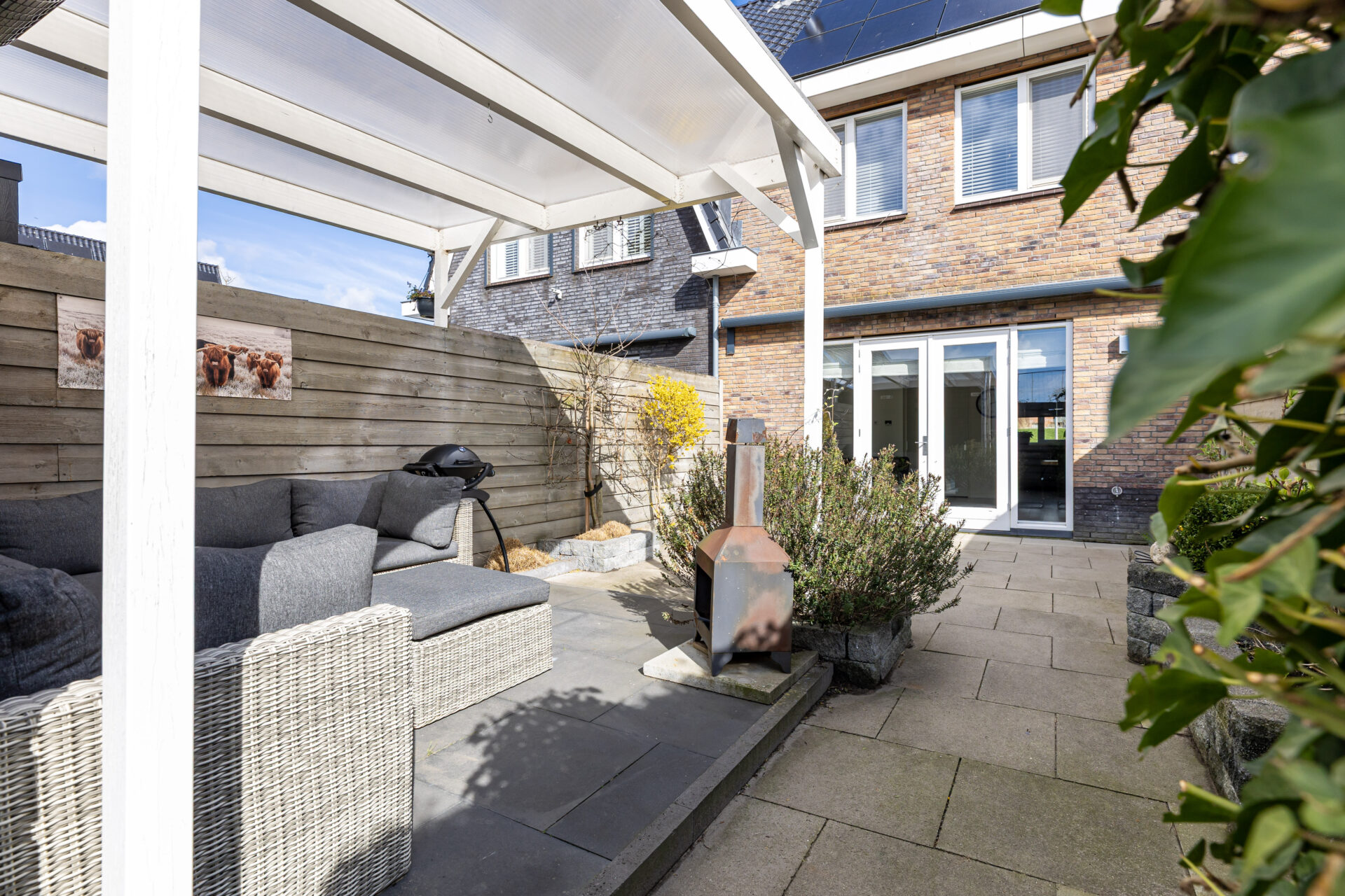 De achterzijde van de woning beschikt over een uitvalscherm (2024) voor de creatie van schaduw!