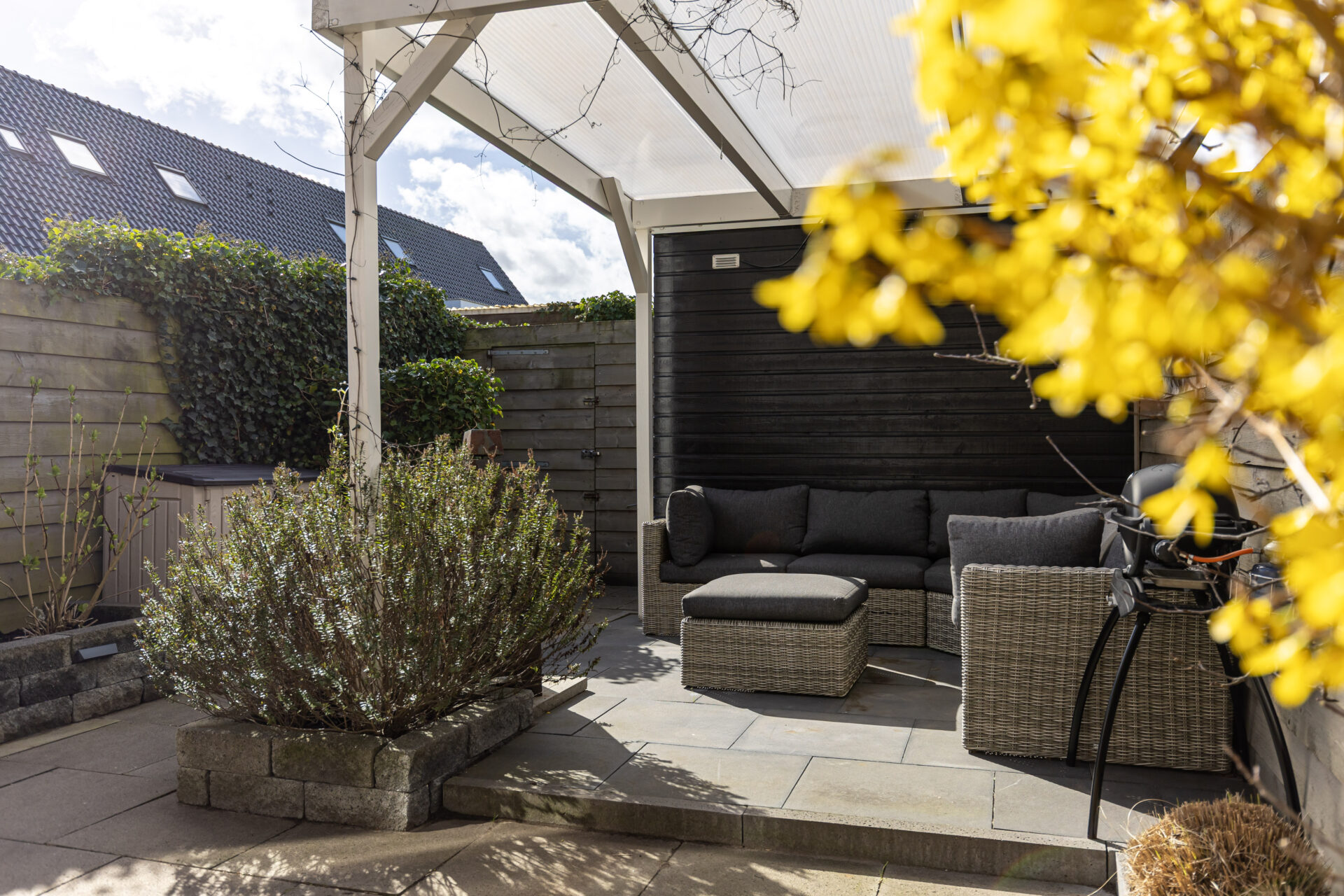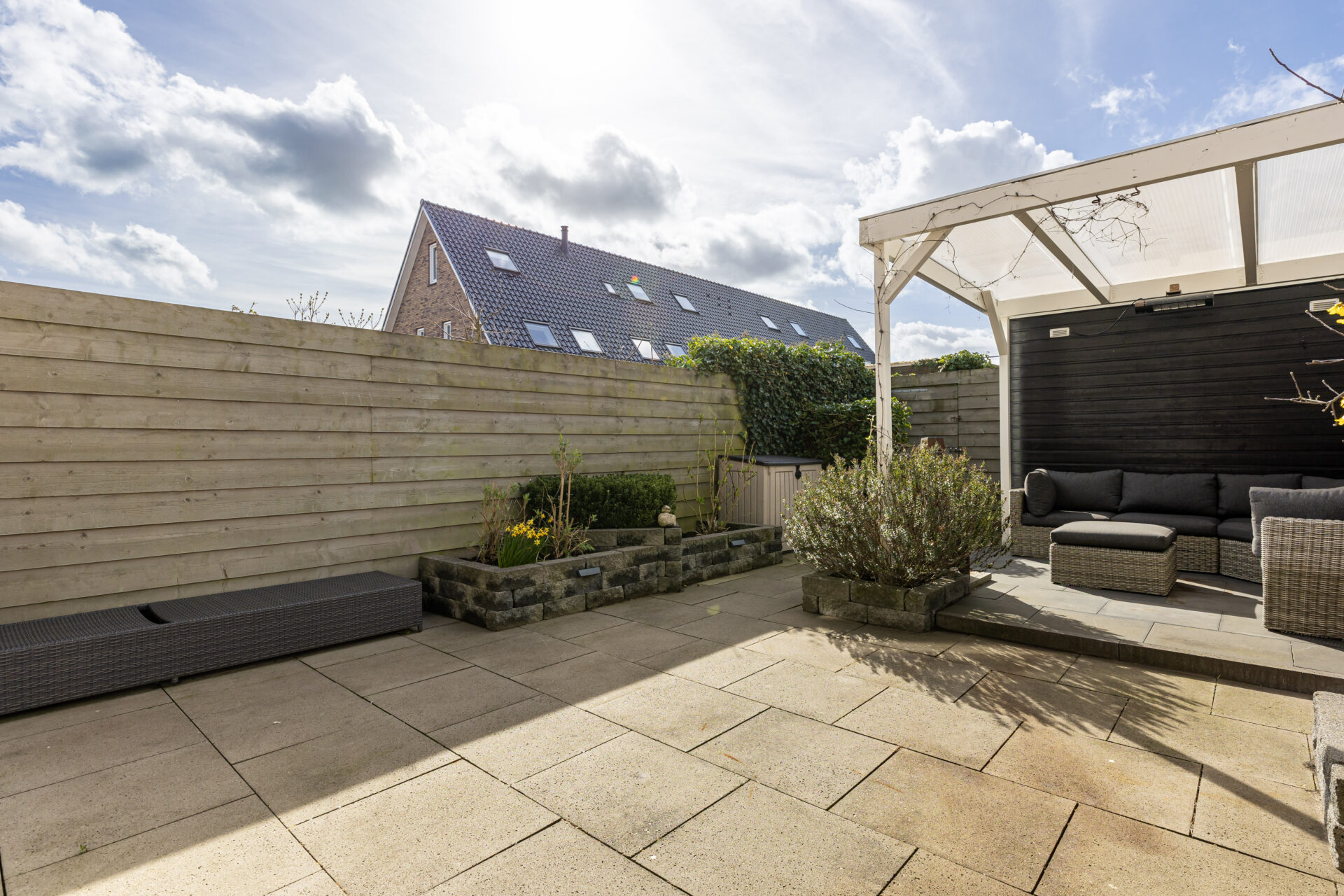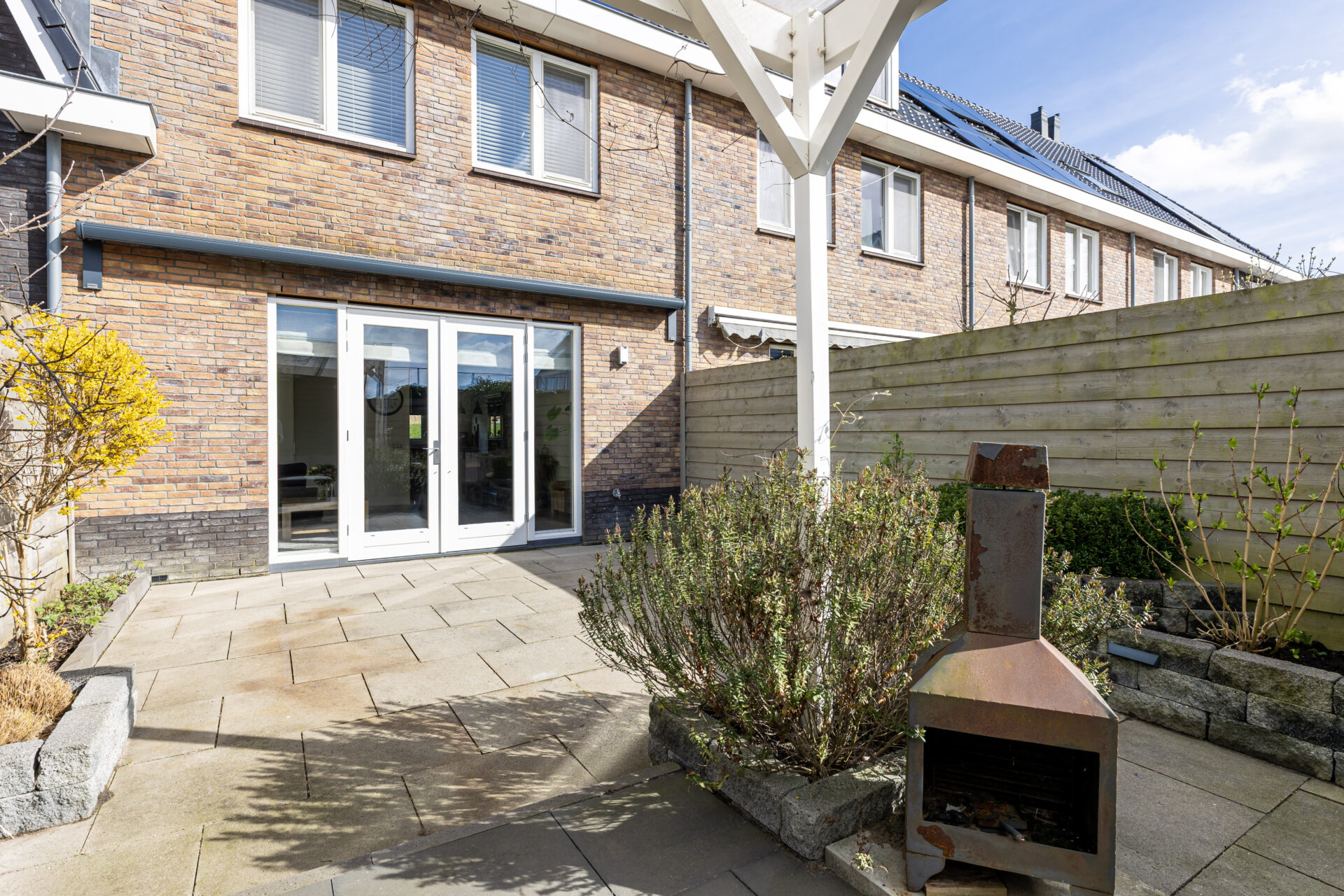 De achterzijde van de woning beschikt over een uitvalscherm (2024) voor de creatie van schaduw!