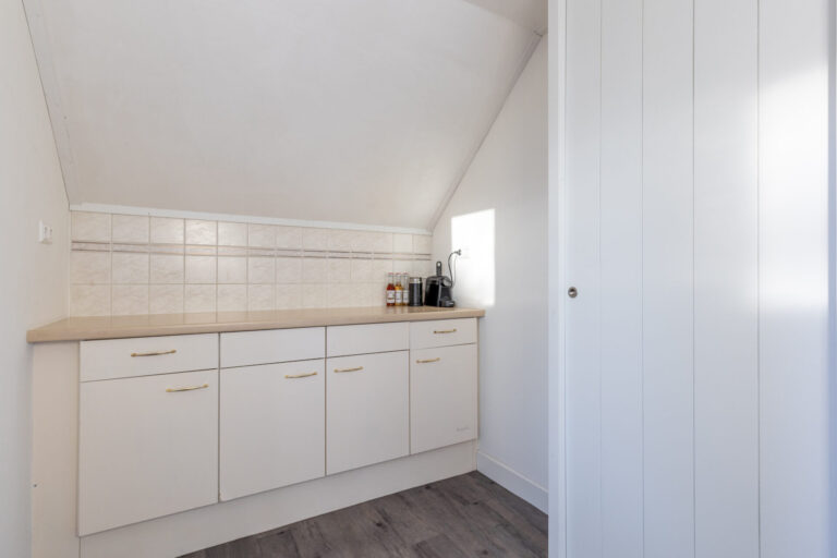 Vanuit de keuken is de praktische bijkeuken gemakkelijk bereikbaar. Hier bevinden zich de cv-installatie en de bergvliering. Tevens is er voldoende opbergruimte aanwezig.