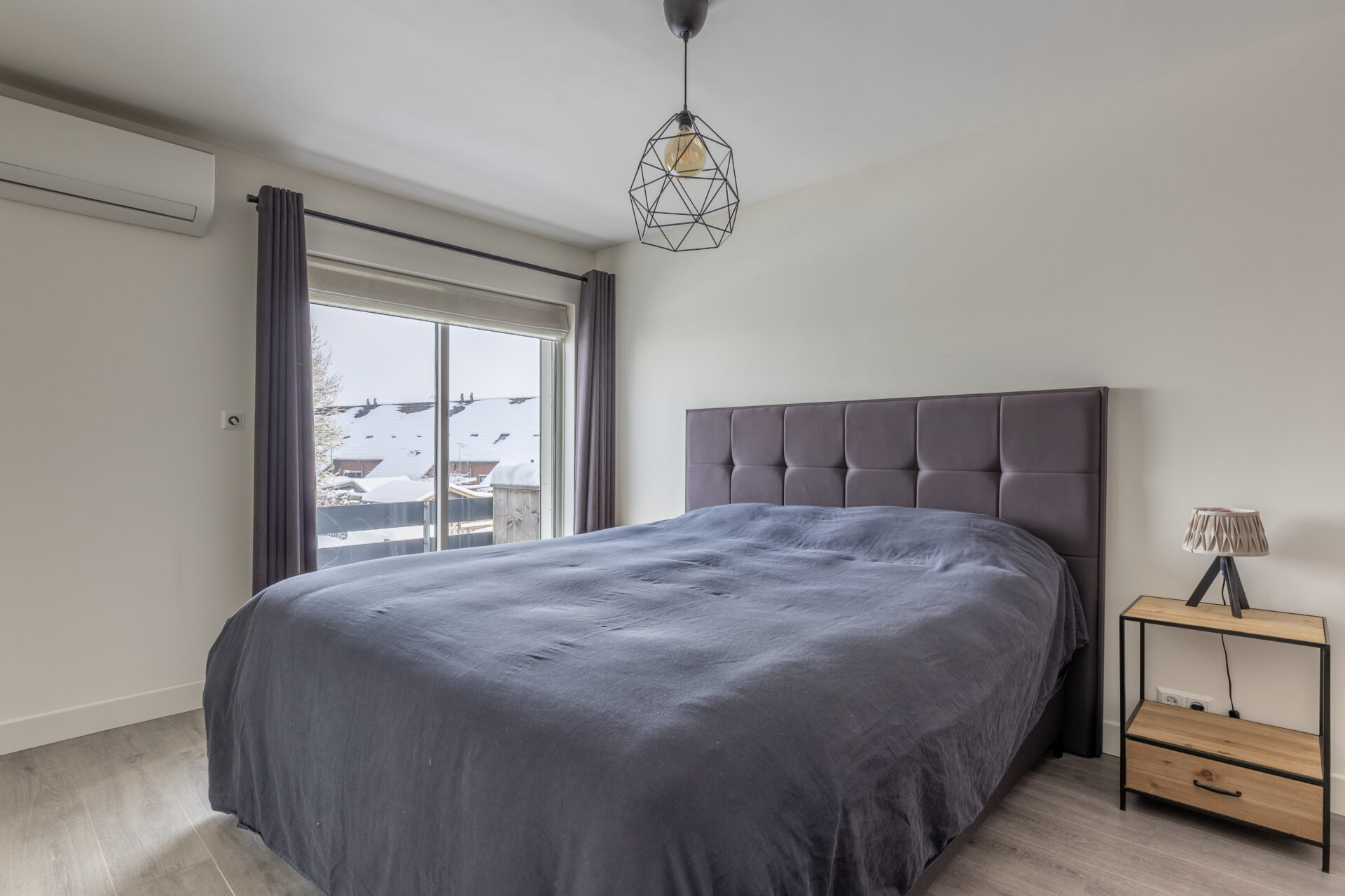 De slaapkamers en overloop op de eerste verdieping beschikken over een laminaatvloer. De badkamer beschikt over een tegelvloer met vloerverwarming.