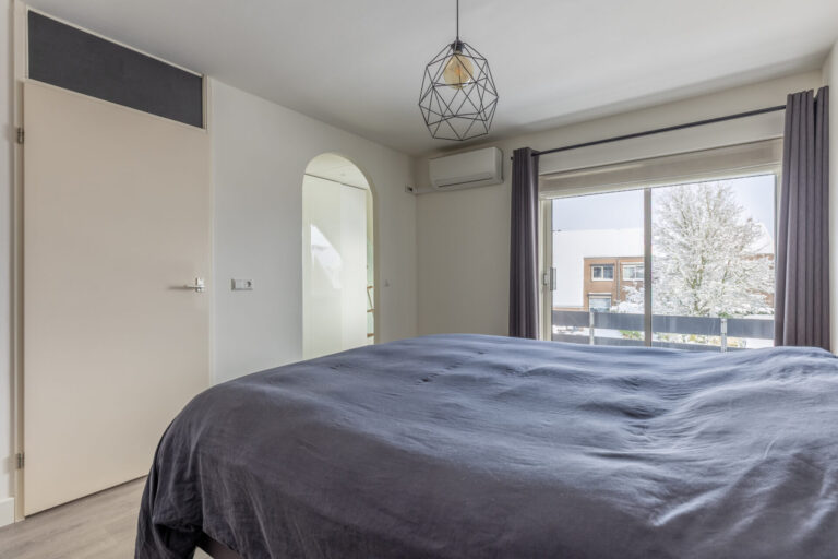De grootste slaapkamer is aan de voorzijde van de woning gelegen en beschikt over een oppervlakte van circa 19,2 vierkante meter. De slaapkamer is uitgerust met airconditioning. De naastgelegen ruimte is bij de slaapkamer betrokken, maar kan weer omgebouwd worden tot een extra slaapkamer.