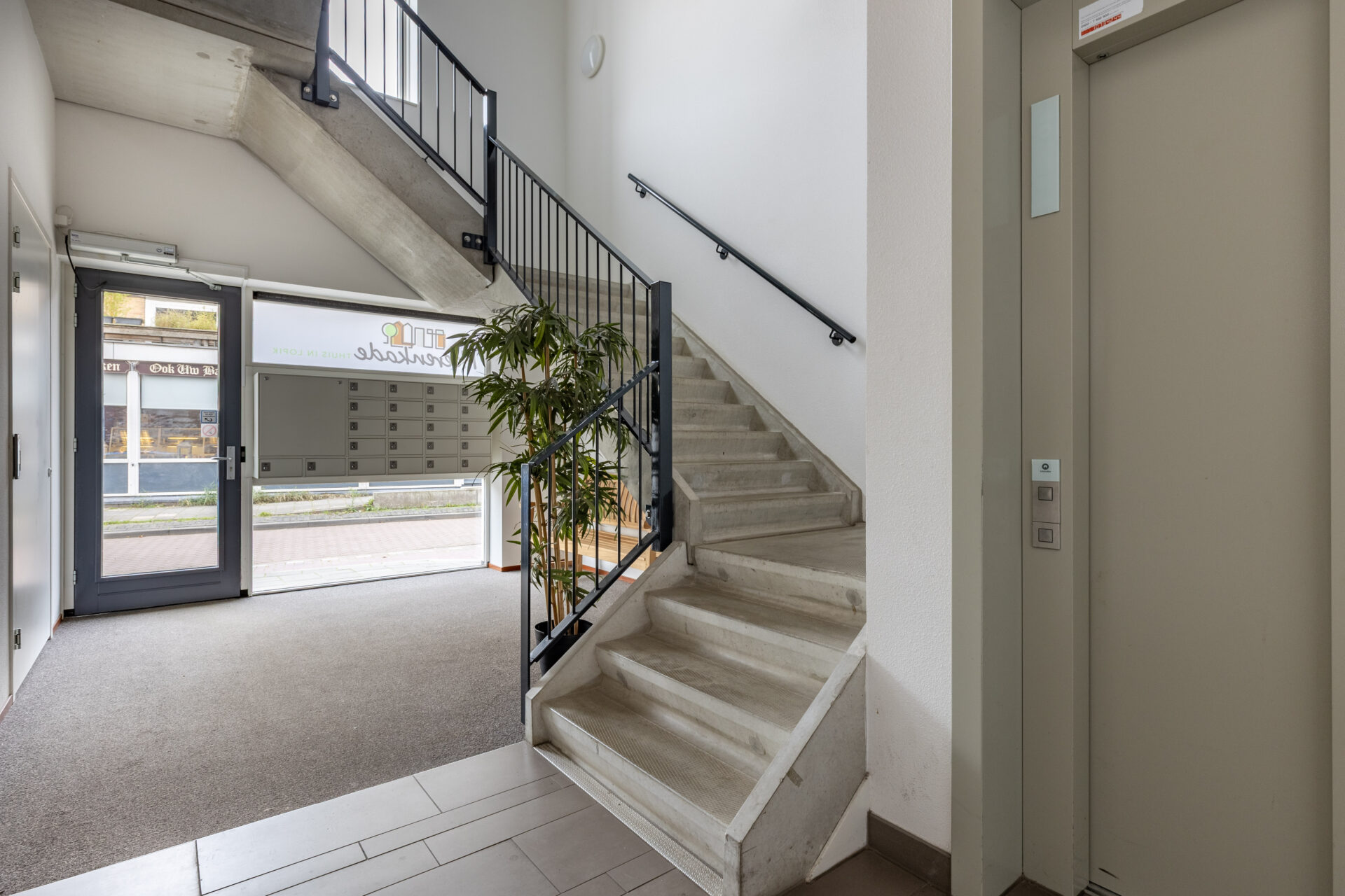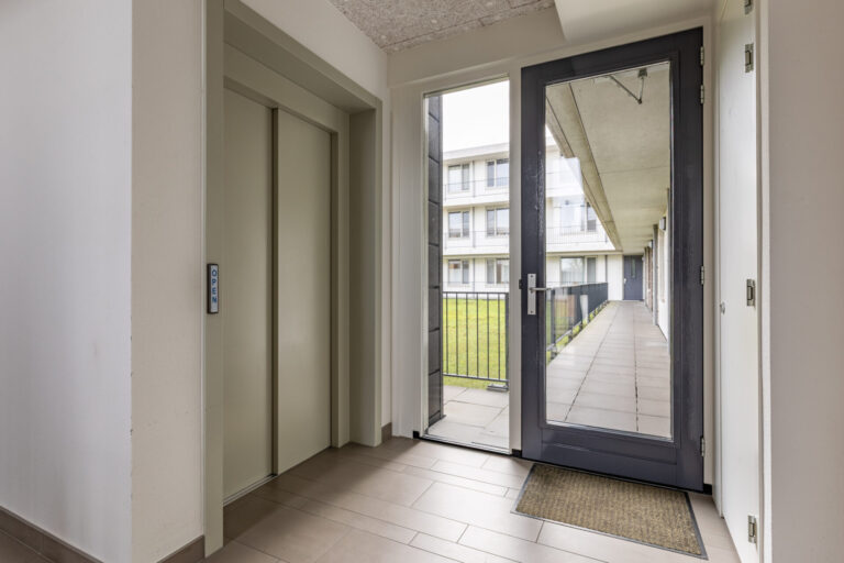 Het appartementsgebouw ‘de Heerenkade’ is bereikbaar via de algemene entree aan de Vogelzangsekade. Hier bevinden zich een trap en een lift naar de verschillende verdiepingen.