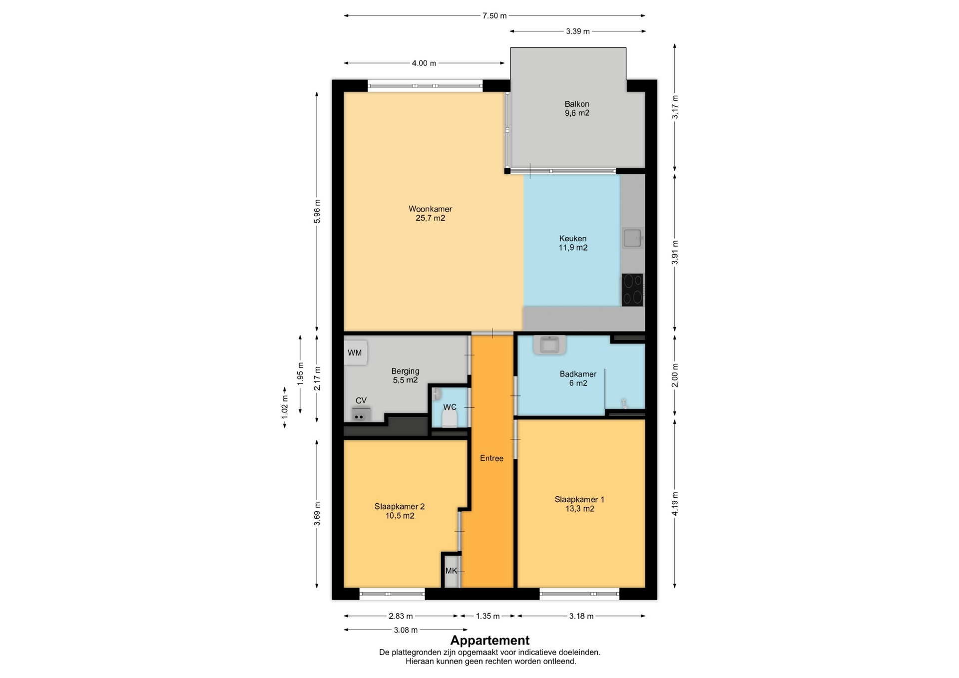 De plattegronden zijn opgemaakt voor indicatieve doeleinden. Hieraan kunnen geen rechten worden ontleend.