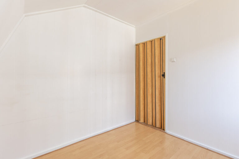 Op de verdieping zijn twee slaapkamers gesitueerd. De grootste slaapkamer bevindt zich aan de achterzijde en beschikt over een oppervlakte van circa 14,1 vierkante meter. Hier zijn ingebouwde kasten voor extra opbergruimte gerealiseerd. Vanuit deze kamer is de praktische bergvliering bereikbaar.
