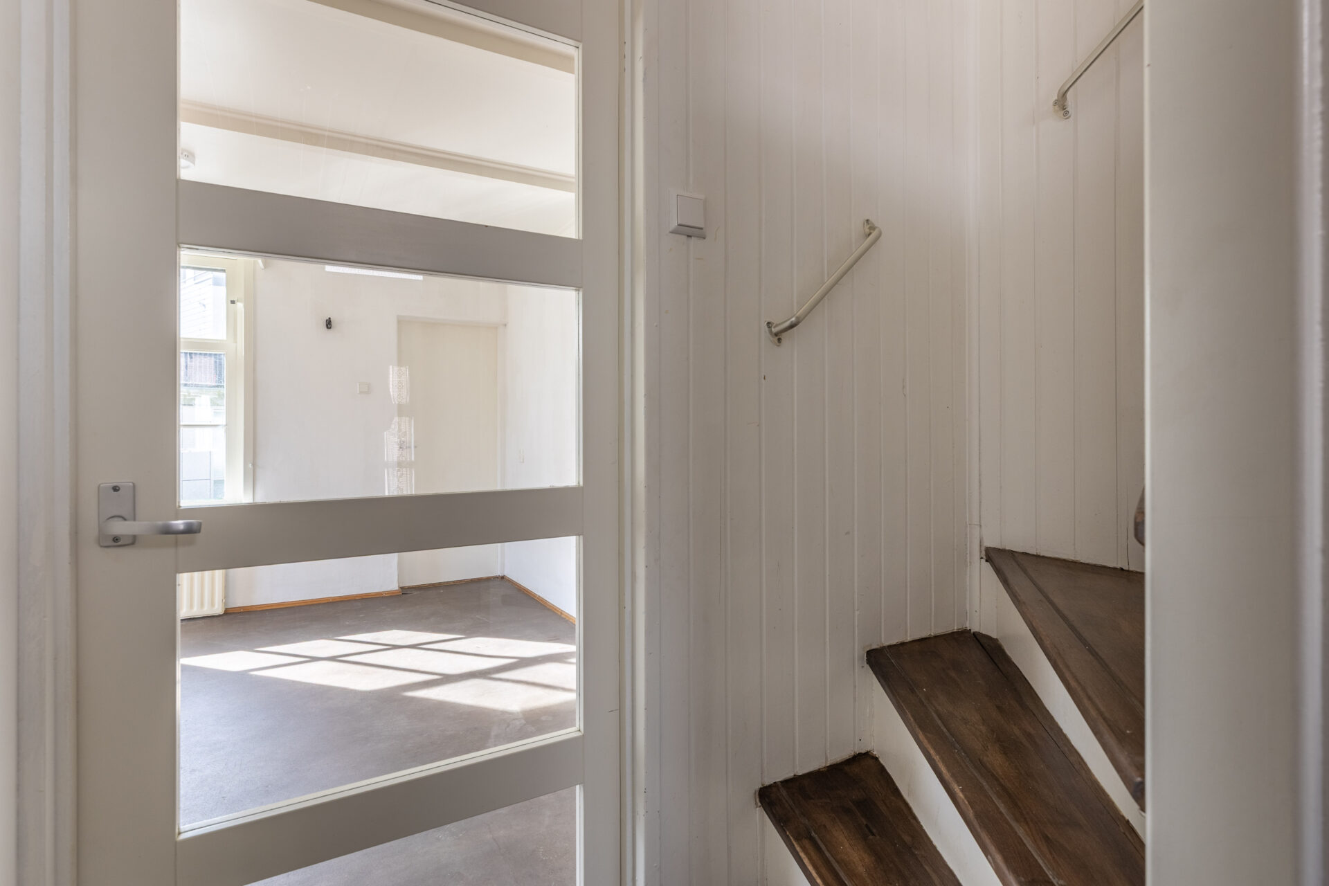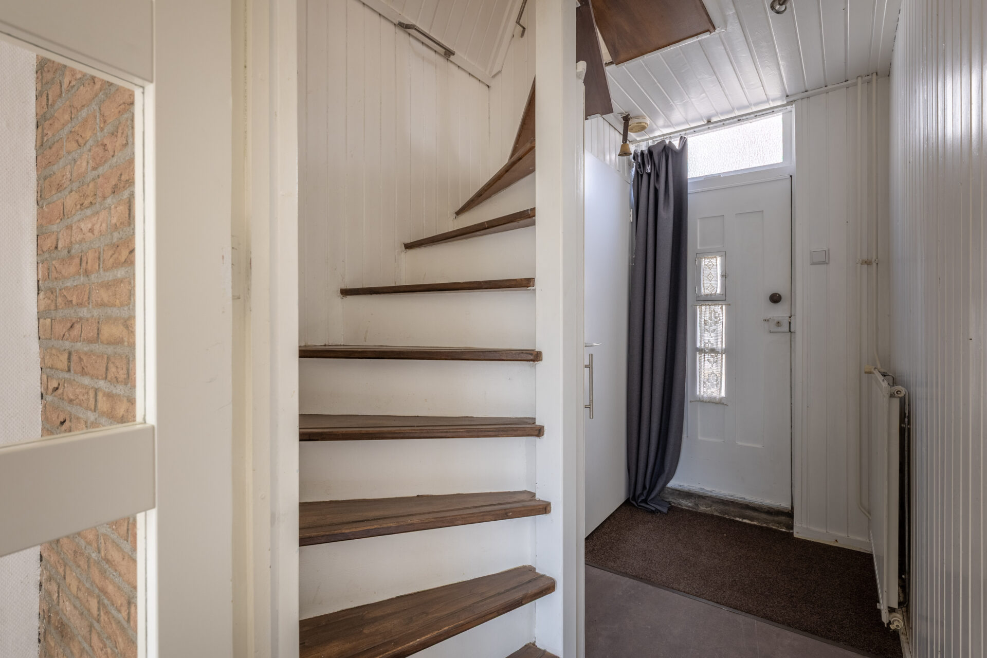 De achterdeur in de hal biedt daarnaast direct toegang tot de zonnige buitenruimte.