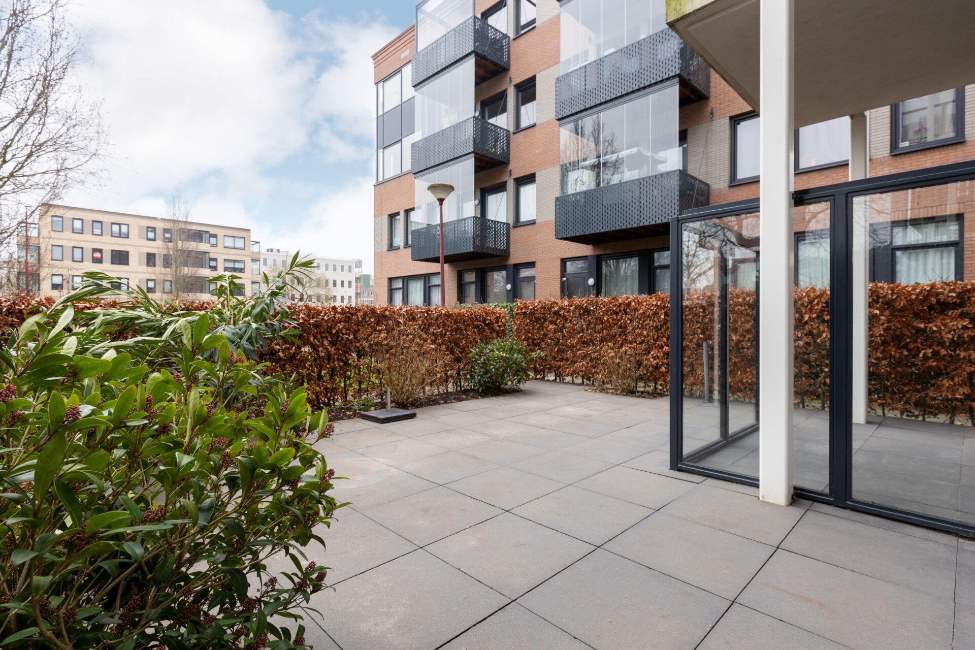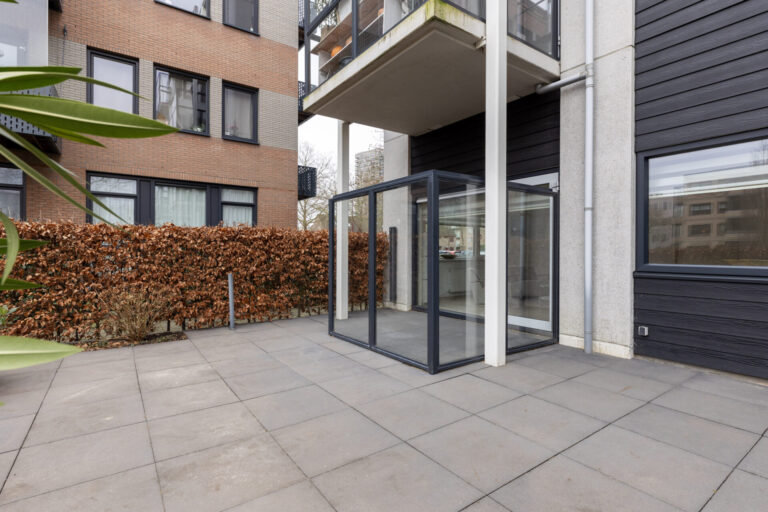 Bij het appartement behoort een eigen buitenruimte, gelegen op het zuidoosten. De buitenruimte is van een riant formaat en biedt de mogelijkheid om verschillende zitgelegenheden te creëren.