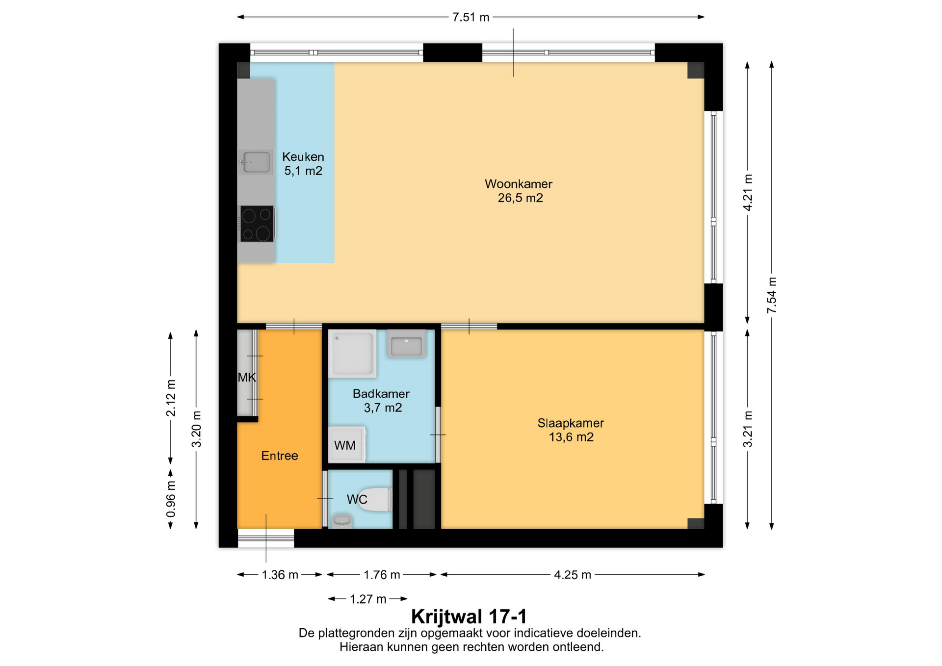 *De verstrekte informatie is met de nodige zorgvuldigheid samengesteld. Onzerzijds wordt echter geen enkele aansprakelijkheid aanvaard voor enige onvolledigheid, onjuistheid of anderszins, dan wel de gevolgen daarvan. Alle opgegeven maten en oppervlakten zijn indicatief.”