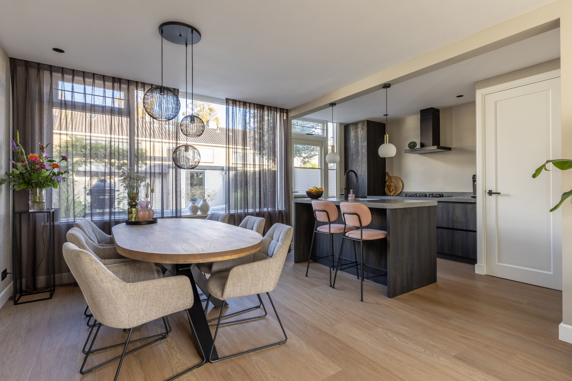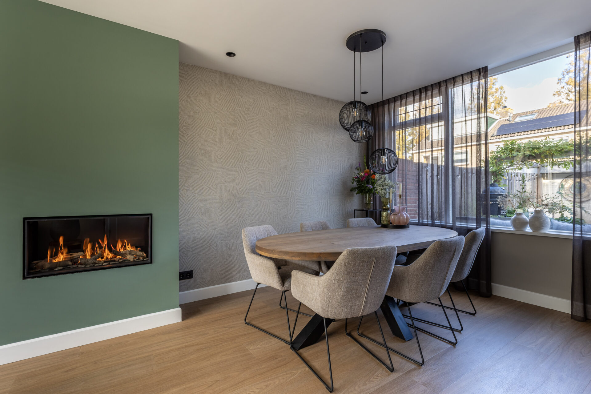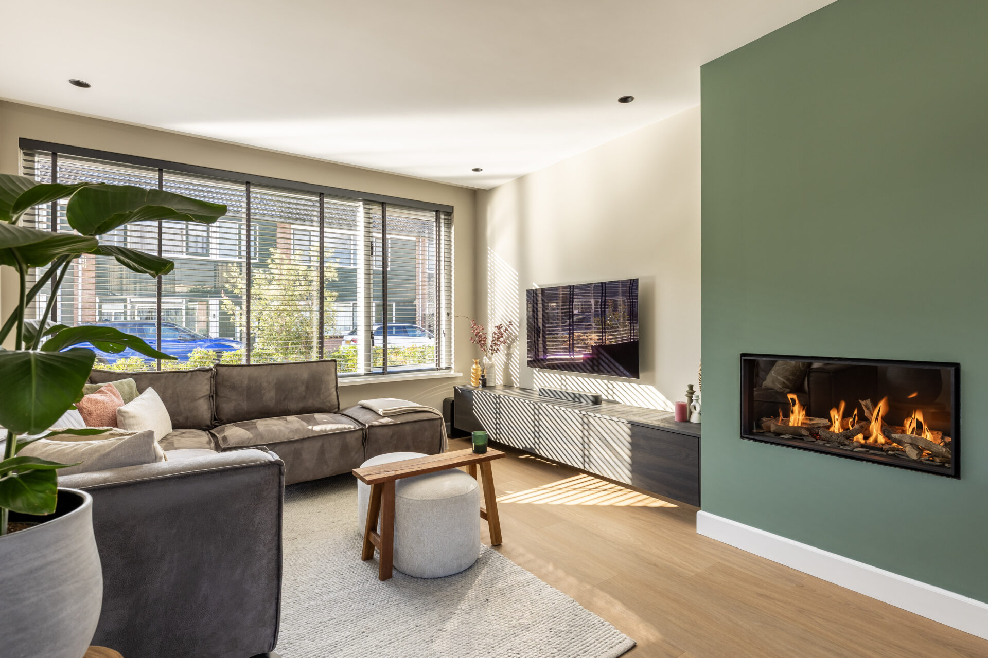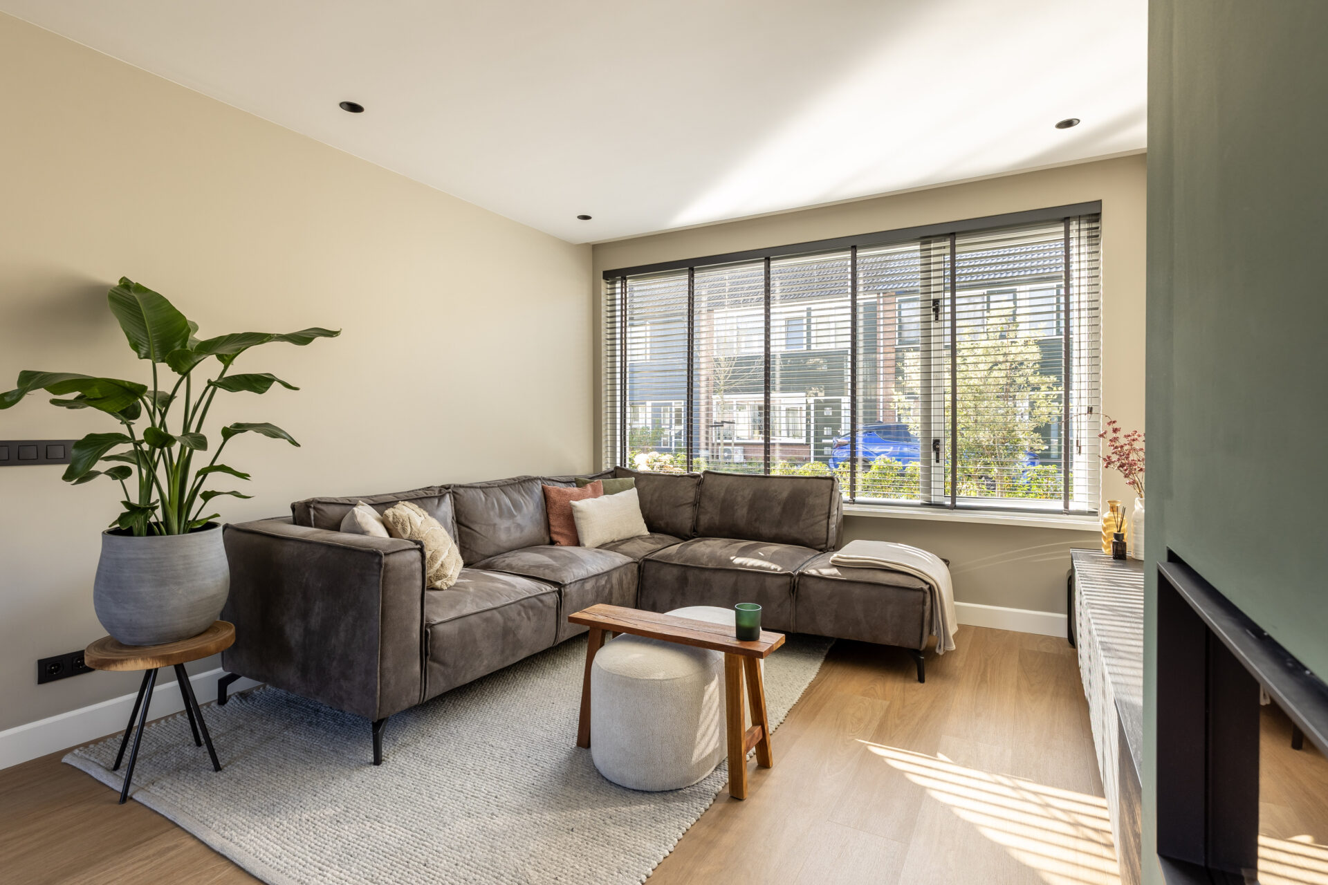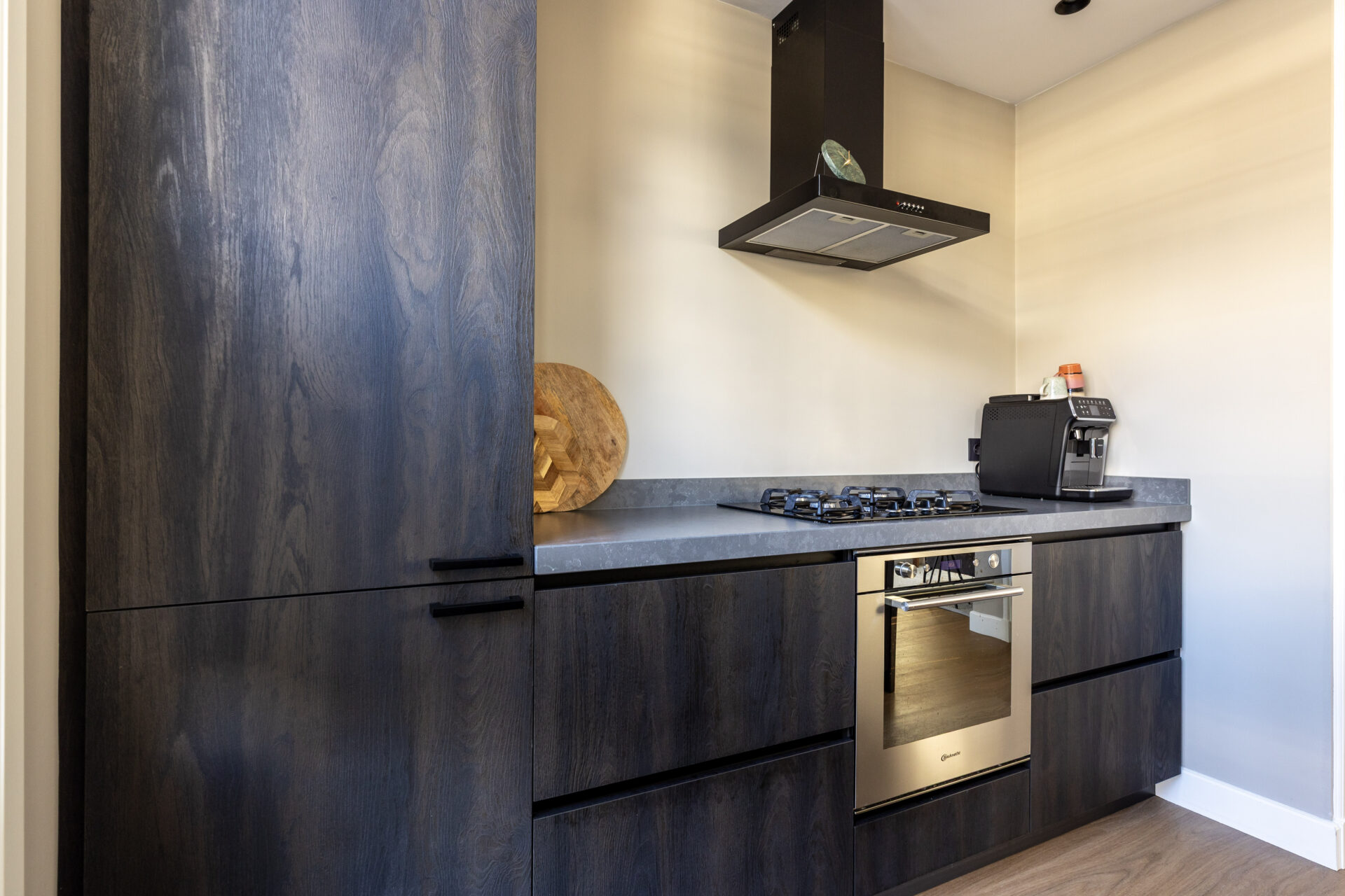 Via de entree bereikt men de woonkamer met open keuken. Door de grote ramen aan zowel de voor- als de achterzijde beschikt deze ruimte over een prettig lichtinval. De zithoek is aan de voorkant van de woning gelegen en beschikt over een sfeervolle gaskachel. Aan de achterzijde van de woning bevindt zich de open keuken met spoeleiland en de eethoek. De keuken is uitgerust met een spoelbak met Quooker, een vaatwasser, een oven, een gasfornuis met afzuigkap en een koel-vriescombinatie. Door de achterdeur in de keuken is de achtertuin gemakkelijk bereikbaar.