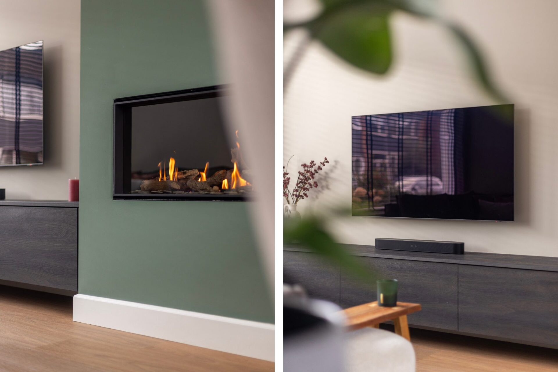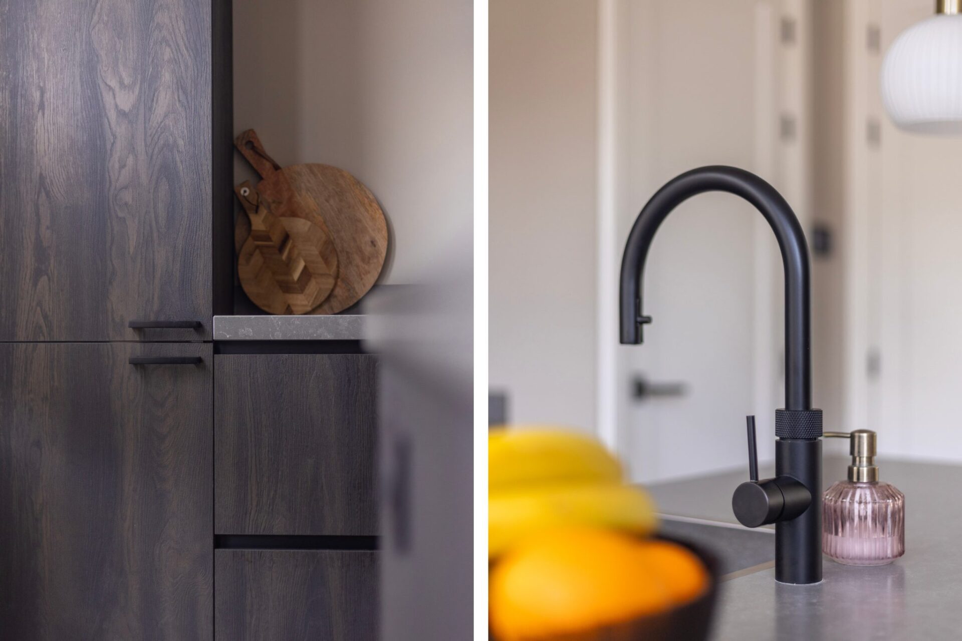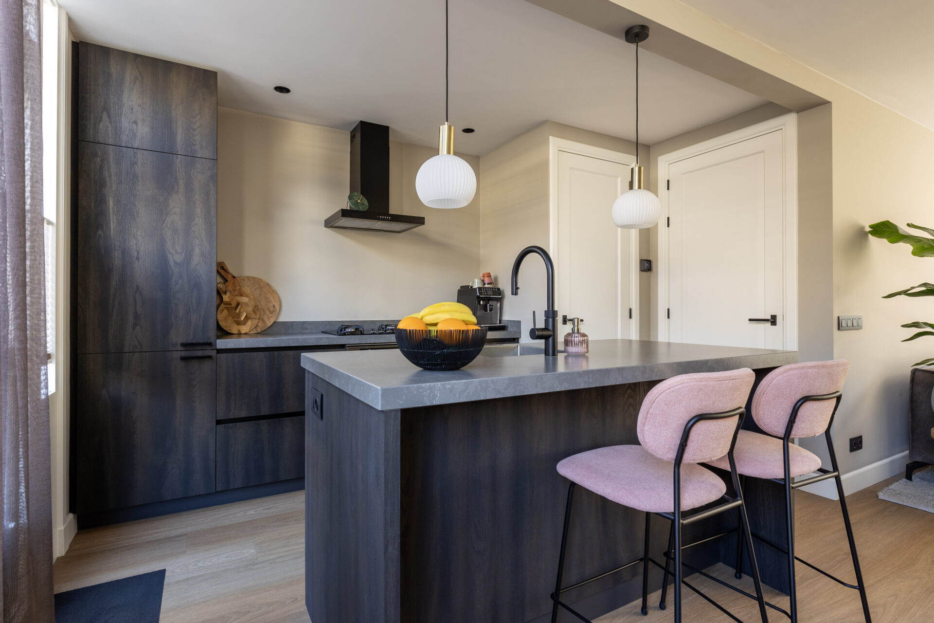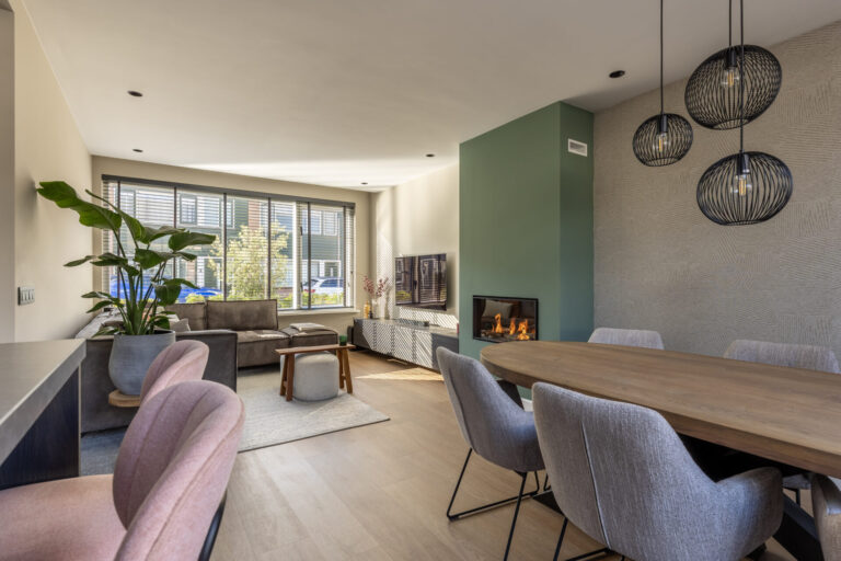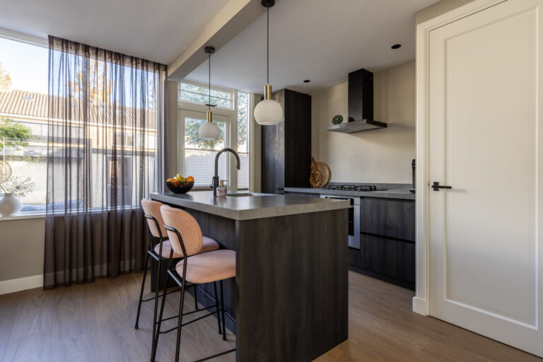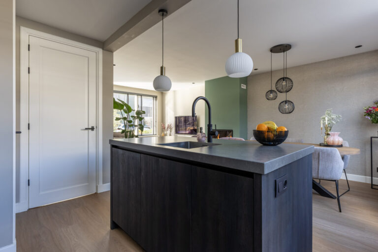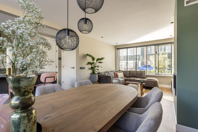 Via de entree bereikt men de woonkamer met open keuken. Door de grote ramen aan zowel de voor- als de achterzijde beschikt deze ruimte over een prettig lichtinval. De zithoek is aan de voorkant van de woning gelegen en beschikt over een sfeervolle gaskachel. Aan de achterzijde van de woning bevindt zich de open keuken met spoeleiland en de eethoek. De keuken is uitgerust met een spoelbak met Quooker, een vaatwasser, een oven, een gasfornuis met afzuigkap en een koel-vriescombinatie. Door de achterdeur in de keuken is de achtertuin gemakkelijk bereikbaar.