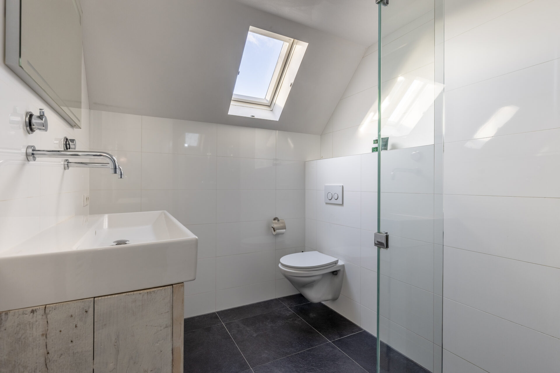 Naast de grootste slaapkamer is de badkamer gelegen. Deze is uitgerust met een inloopdouche, een wastafelmeubel en een tweede toilet.